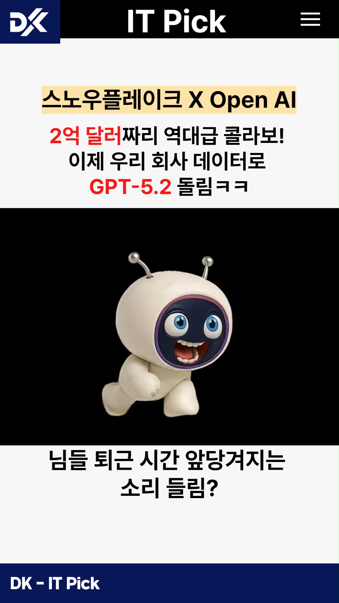 스노우플레이크와 OpenAI의 파트너십 소식을 재밌게 40초 숏츠로 압축했습니다!